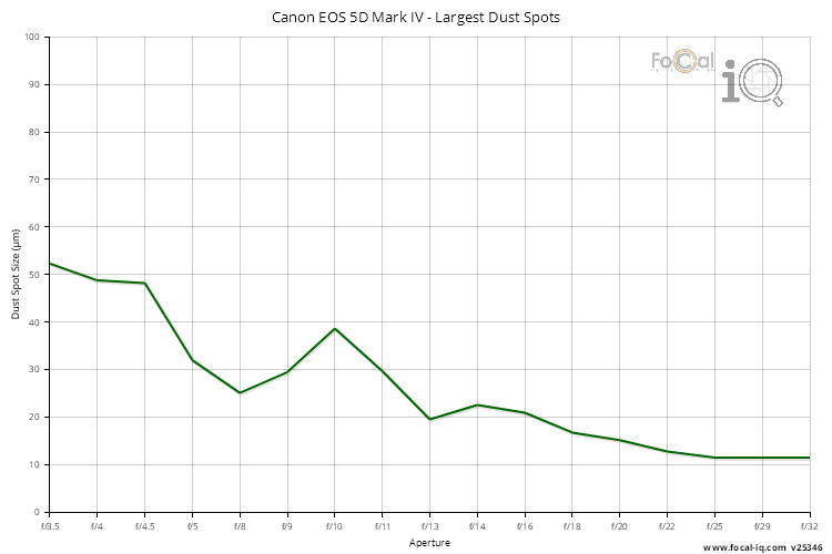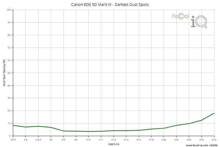 The Dust information shows how dust affects the sensor for the Canon EOS 5D Mark IV.