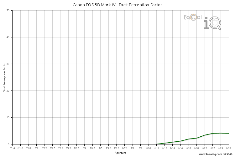 The Dust Perception Factor is a calculation which represents how likely you are to notice the dust spots on the sensor for typical shooting. A higher value indicates a higher likelihood of noticing the spots.