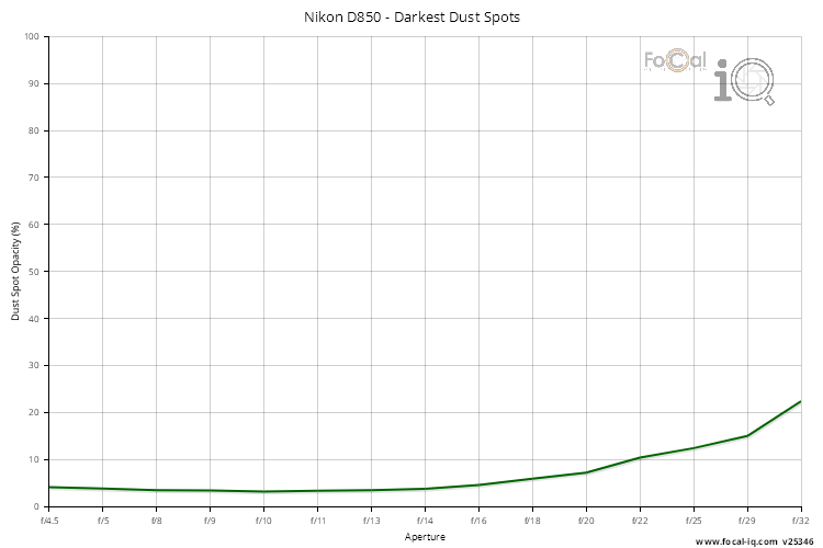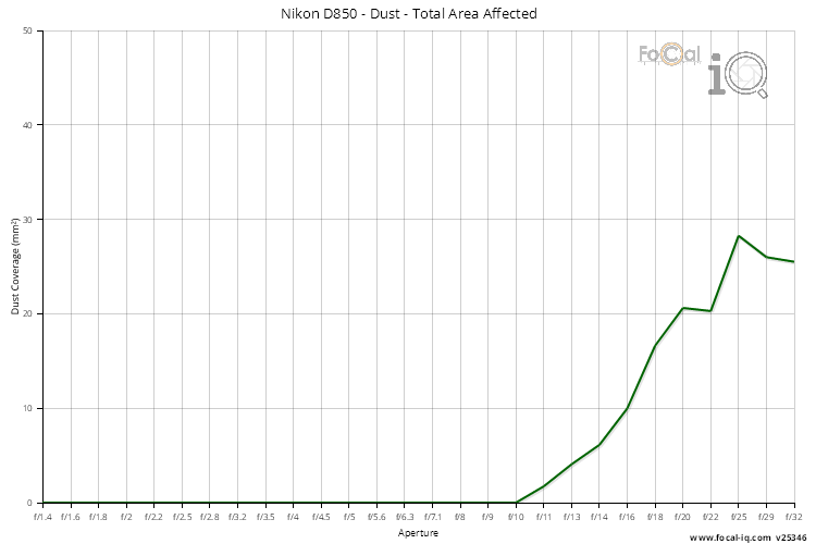 The Dust information shows how dust affects the sensor for the Nikon D850.