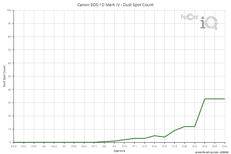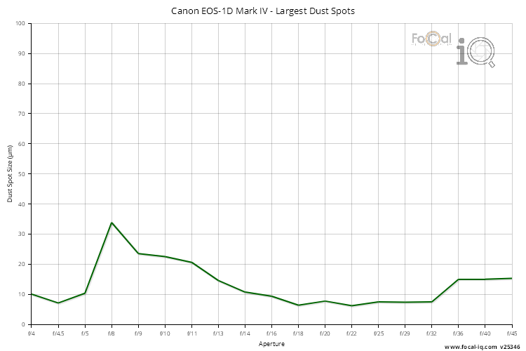 The Dust information shows how dust affects the sensor for the Canon EOS-1D Mark IV.