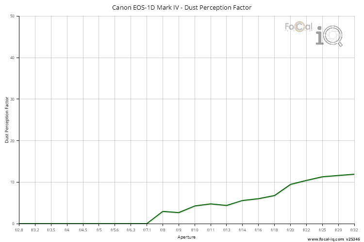 The Dust Perception Factor is a calculation which represents how likely you are to notice the dust spots on the sensor for typical shooting. A higher value indicates a higher likelihood of noticing the spots.