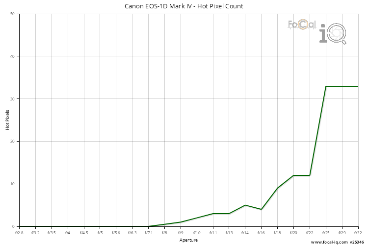 The Hot Pixel information shows how hot pixels affect the sensor for the Canon EOS-1D Mark IV.