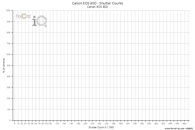 The following chart shows the distribution of shutter counts reported by cameras tested with FoCal. The horizontal axis of the chart is grouped into bins of 10,000 shutter actuations.