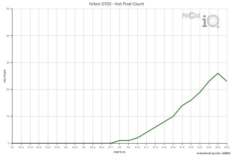 The Hot Pixel information shows how hot pixels affect the sensor for the Nikon D700.