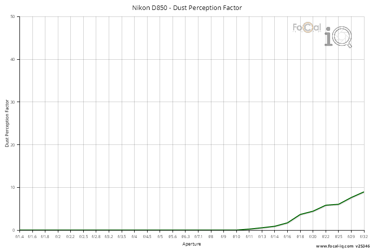 The Dust Perception Factor is a calculation which represents how likely you are to notice the dust spots on the sensor for typical shooting. A higher value indicates a higher likelihood of noticing the spots.