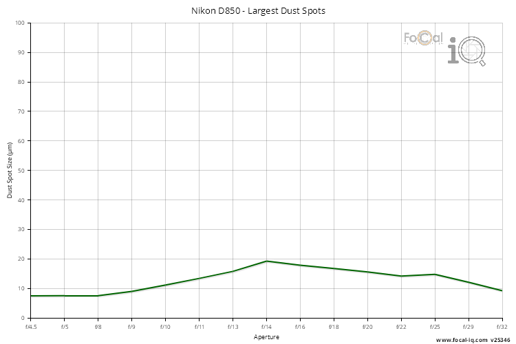 The Dust information shows how dust affects the sensor for the Nikon D850.