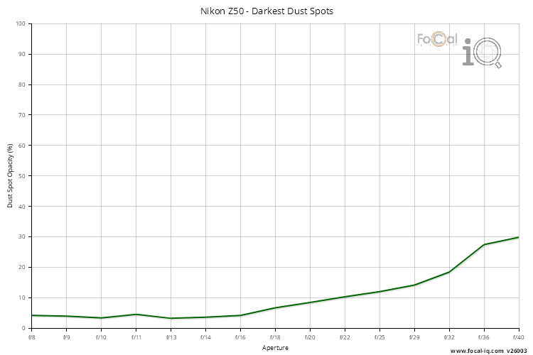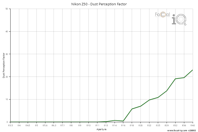 The Dust Perception Factor is a calculation which represents how likely you are to notice the dust spots on the sensor for typical shooting. A higher value indicates a higher likelihood of noticing the spots.