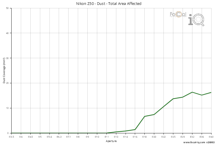 The Dust information shows how dust affects the sensor for the Nikon Z50.