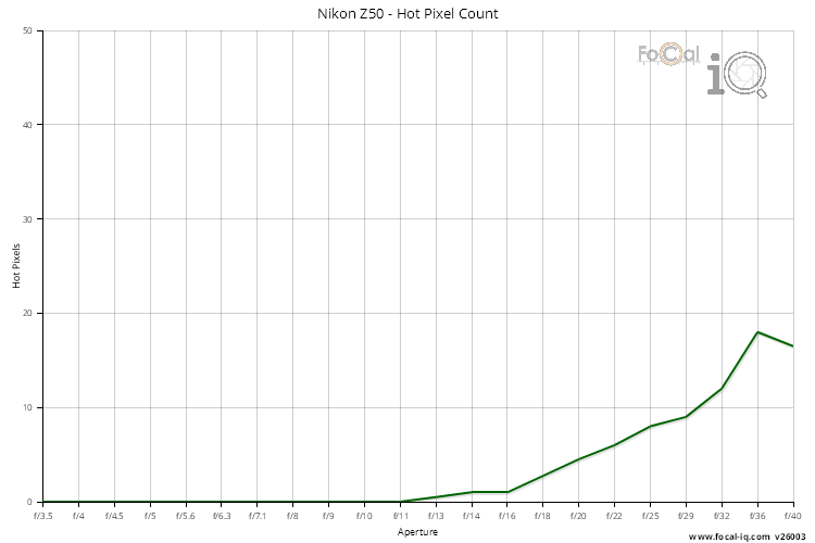 The Hot Pixel information shows how hot pixels affect the sensor for the Nikon Z50.