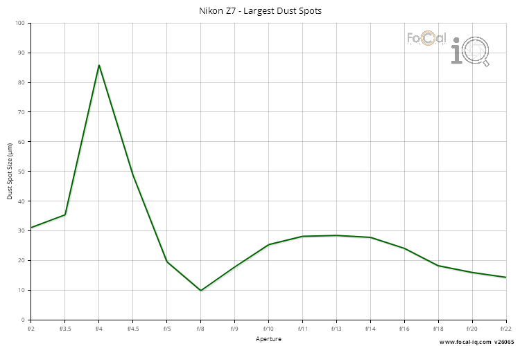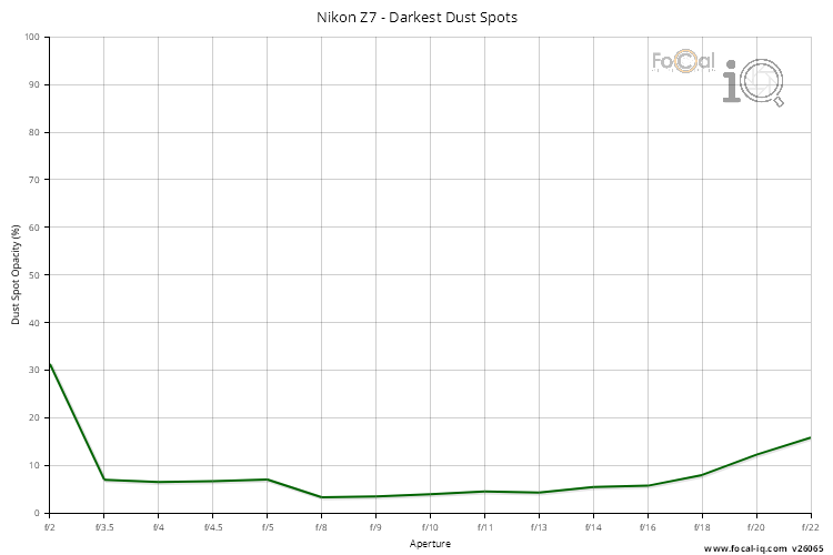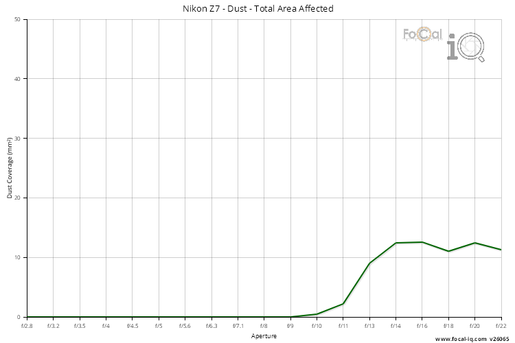 The Dust information shows how dust affects the sensor for the Nikon Z7.