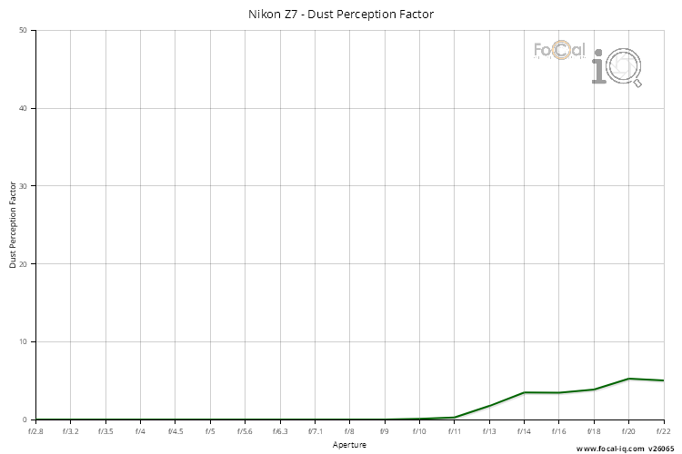 The Dust Perception Factor is a calculation which represents how likely you are to notice the dust spots on the sensor for typical shooting. A higher value indicates a higher likelihood of noticing the spots.