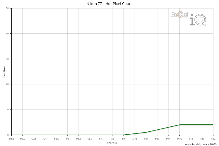 The Hot Pixel information shows how hot pixels affect the sensor for the Nikon Z7.